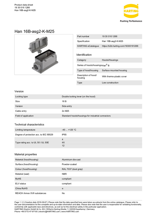 Obudowa podstawowa 19 30 016 1266 Harting 1 szt.