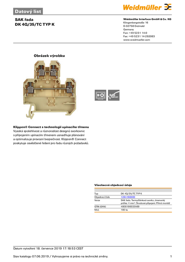 Złączka szynowa przelotowa Weidmüller 1284160000 śrubowe 100 szt.