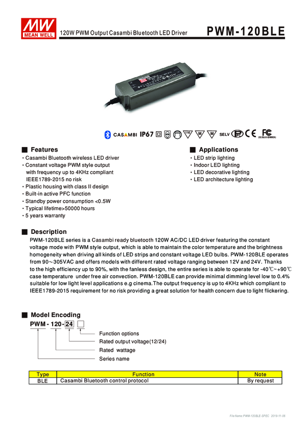 Zasilacz BLUETOOTH do oświetlenia LED 12V 10A 120W Mean Well PWM-120-12BLE