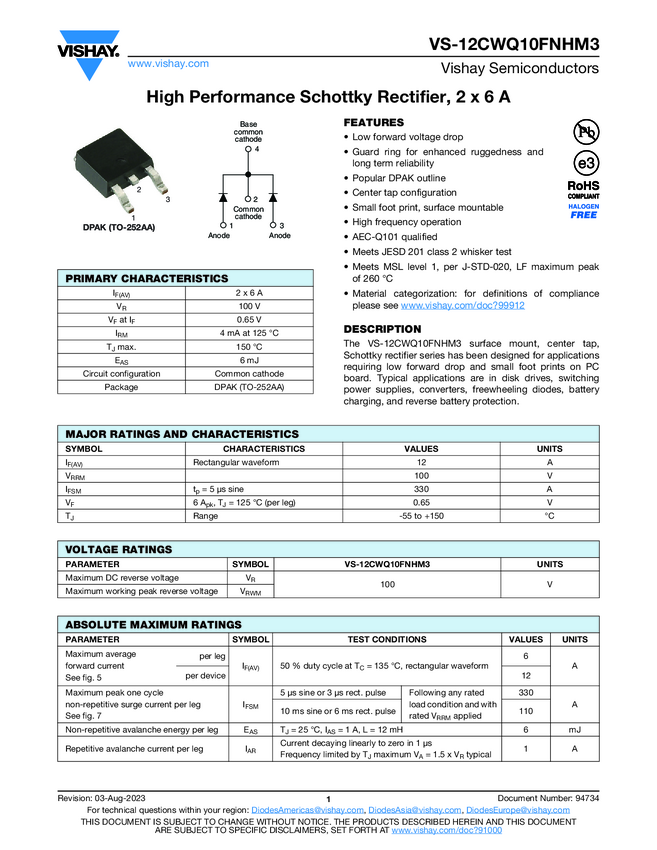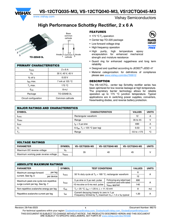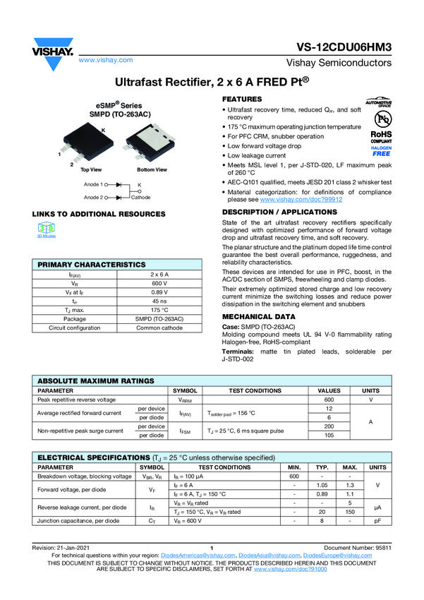 Ultrafast Rectifier, 2 x 6 A FRED Pt®