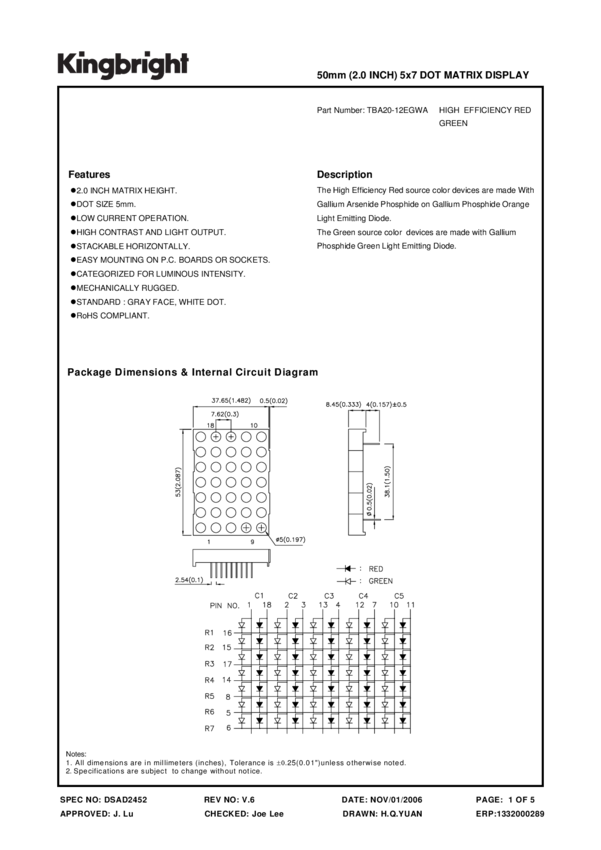 Displays Dot Matrix Module 35LED Green/Red 18-Pin DIP Tube