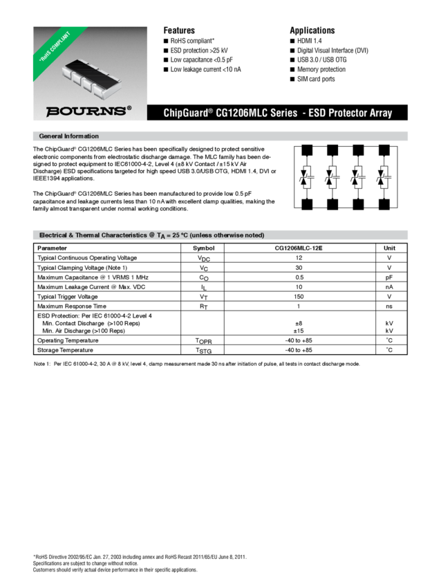 ESD Suppressor ±15KV 8-Pin Case 1206 T/R