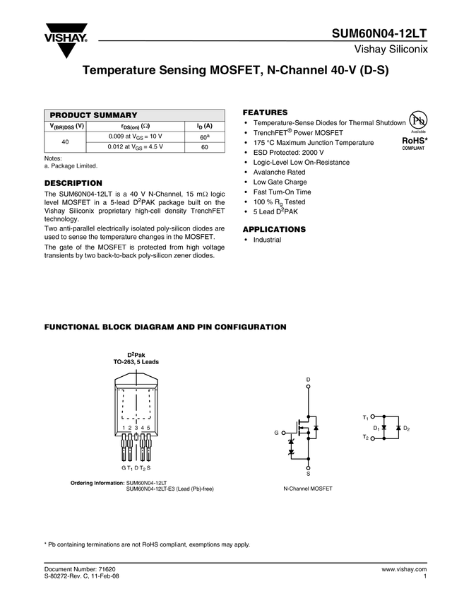 Temperature Sensing MOSFET,N-Channel 40-V (D-S)