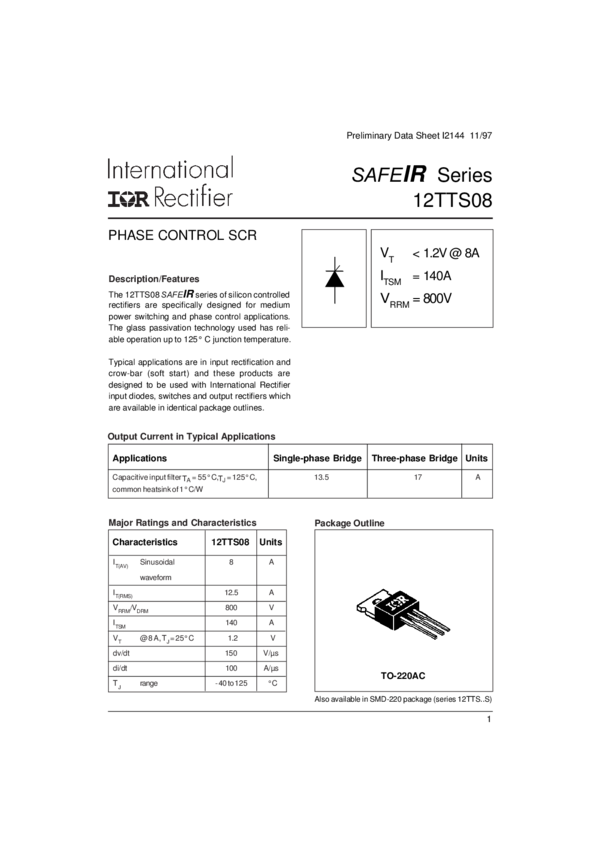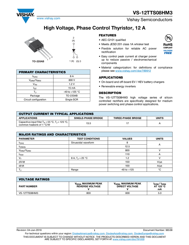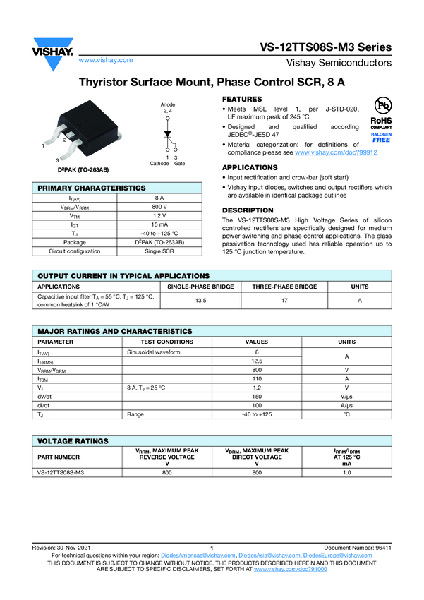 Thyristor Surface Mount, Phase Control SCR, 8 A