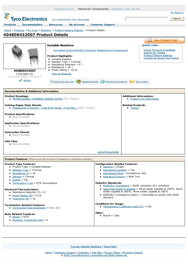 Res Cermet Trimmer 1K Ohm 10% 1/4W 12Turn 1.8mm (6.8 X 4.7 X 8.2mm) Pin Thru-Hole