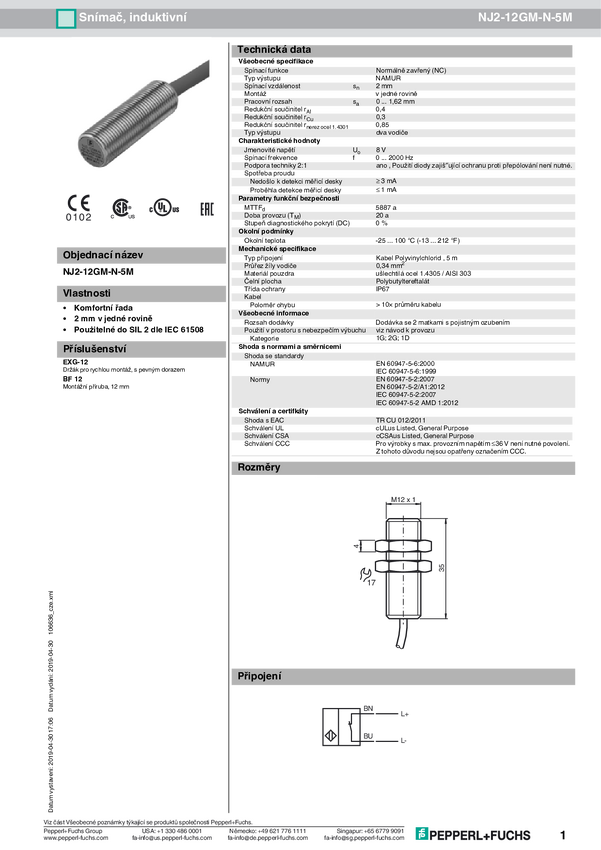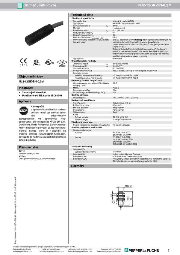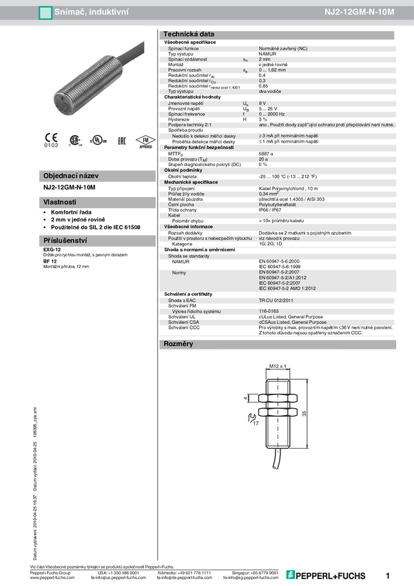 Czujnik indukcyjny Pepperl+Fuchs NJ2-12GM-N 12xG1xxD 70133050 1 szt.