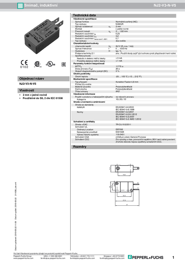 Pepperl+Fuchs Czujnik indukcyjny NAMUR NJ2-V3-N-V5 12xG1xxD