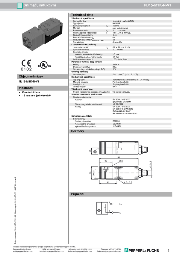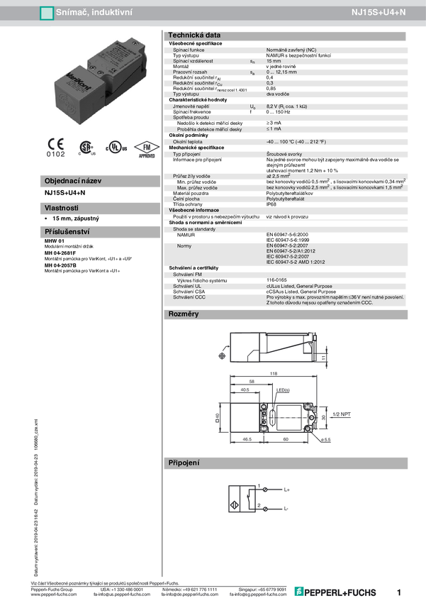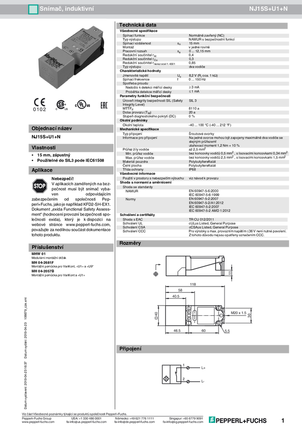 Czujnik indukcyjny Pepperl+Fuchs NJ15S+U1+N 12xG1xxD 70133115 1 szt.