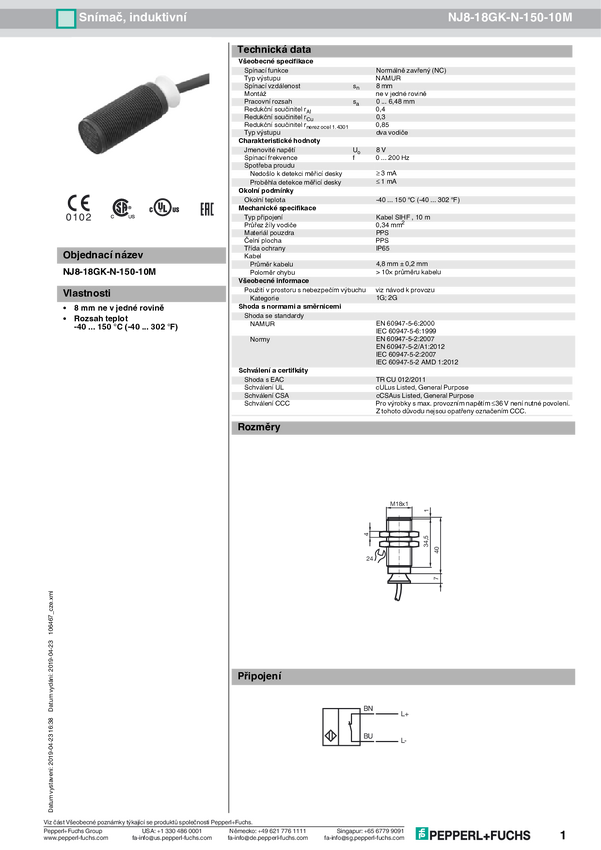 Pepperl+Fuchs Czujnik indukcyjny NAMUR NJ8-18GK-N-150 12xGxxxD