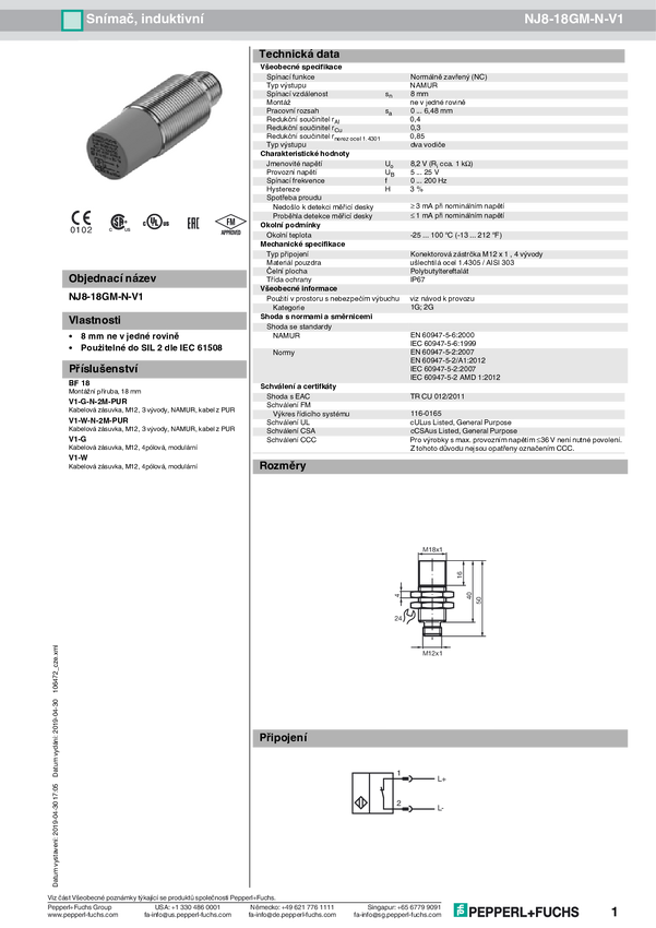Pepperl+Fuchs Czujnik indukcyjny NAMUR NJ8-18GM-N-V1 12xGxxxD