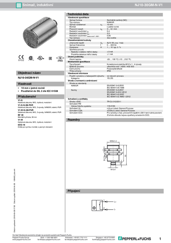 Czujnik indukcyjny Pepperl+Fuchs NJ10-30GM-N-V1 12xGxxxD 70133315 1 szt.