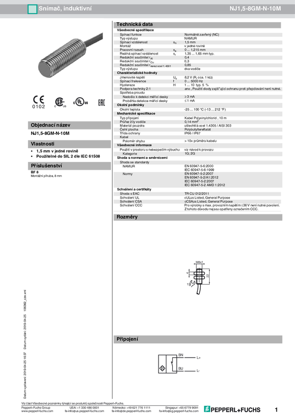 Czujnik indukcyjny Pepperl+Fuchs NJ1,5-8GM-N-10M 12xGxxxD 70133338 1 szt.