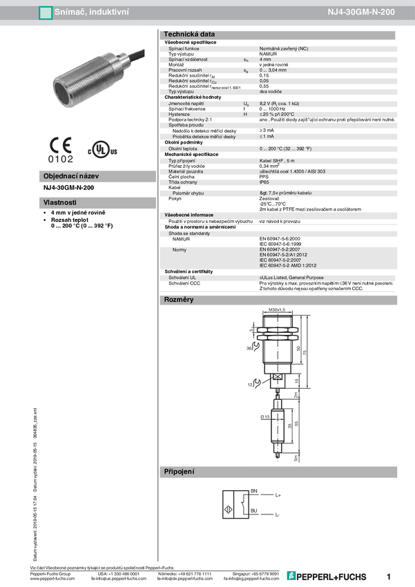 Czujnik indukcyjny Pepperl+Fuchs NJ4-30GM-N-200 12xGxxxD 70133020 1 szt.