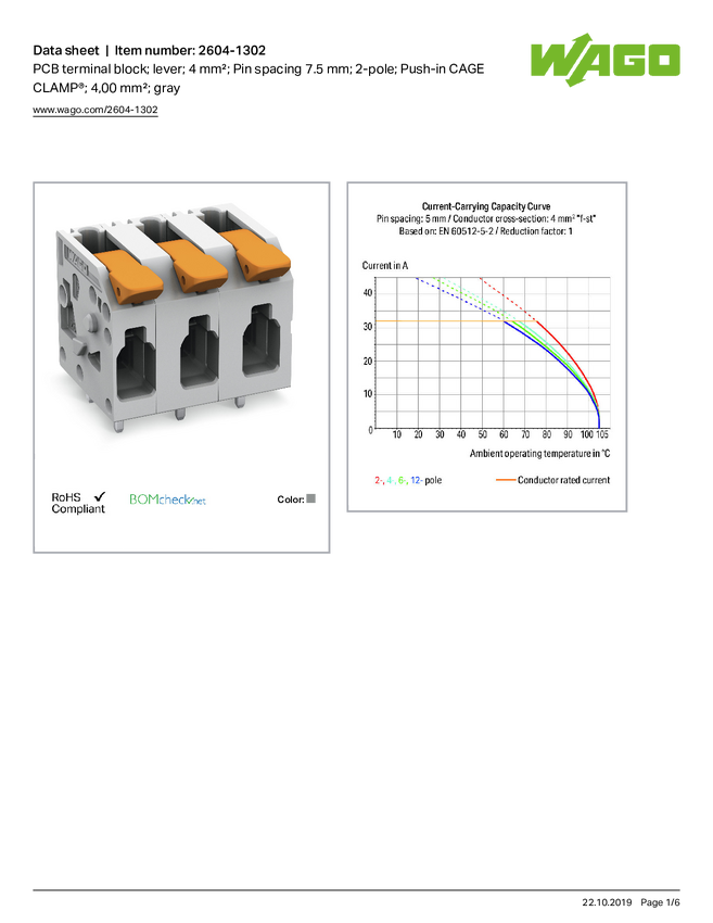 WAGO 2604-1302 Terminal PCB 4 mm² Ilość styków 2 1 szt.