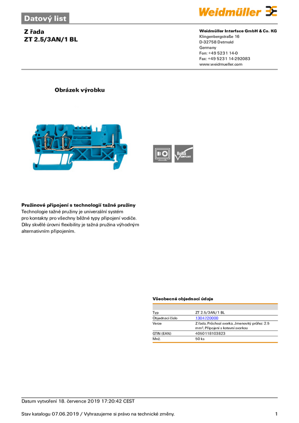 Złączka szynowa przelotowa Weidmüller 1304720000 sprężynowe 50 szt.