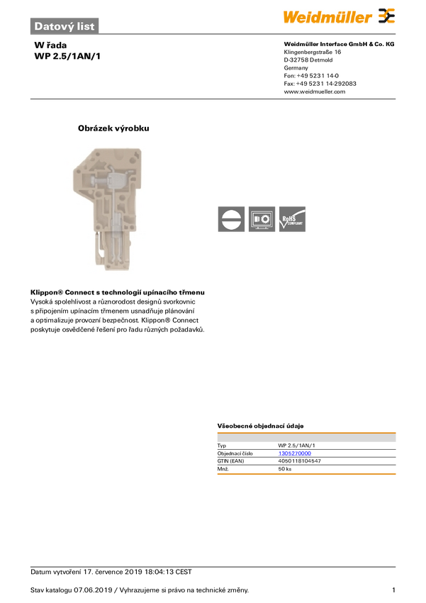 Weidmüller 1305270000 Wtyk 1 szt.