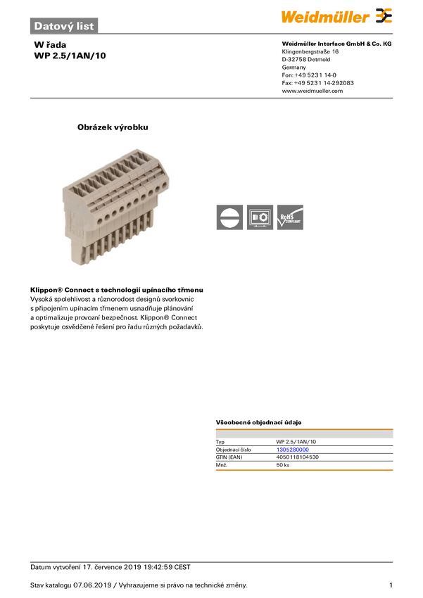 Weidmüller 1305280000 Wtyk 50 szt.