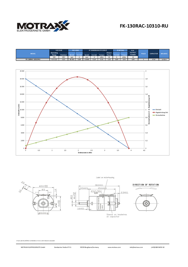 Silnik elektryczny szczotkowy uniwersalny Motraxx LFK-130RAC-10310, 1.320 W, 9 - 12 V/DC