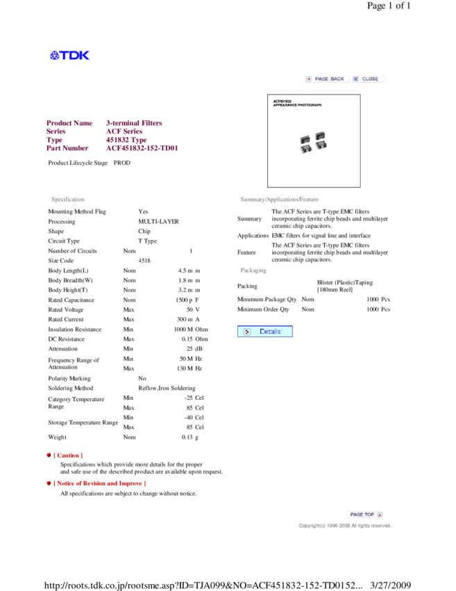 EMI Filter 50MHz to 130MHz 25dB 0.3A 50VDC Flat Style SMD T/R