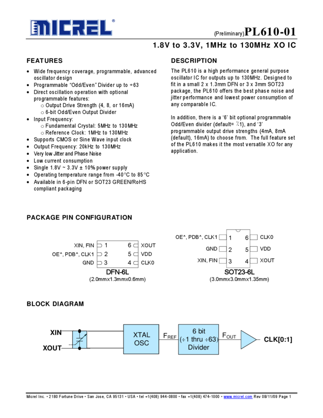 PL610-01 - 1.8V to 3.3V, 1MHz to 130MHz XO IC