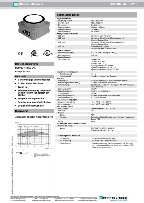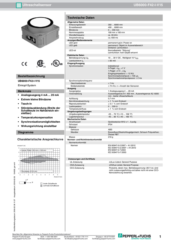 Czujnik ultradźwiękowy Pepperl+Fuchs 134007 1 szt.