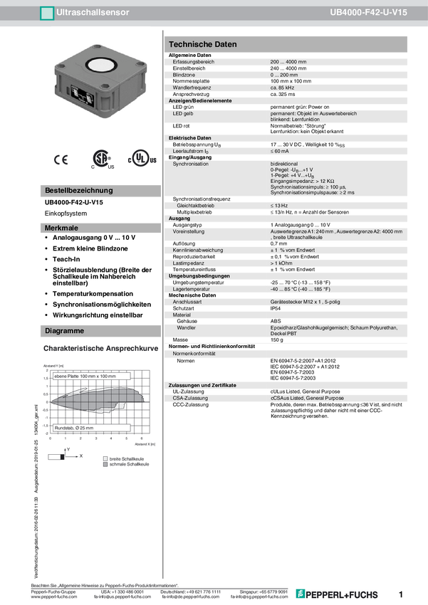 Czujnik ultradźwiękowy Pepperl+Fuchs 134004 1 szt.
