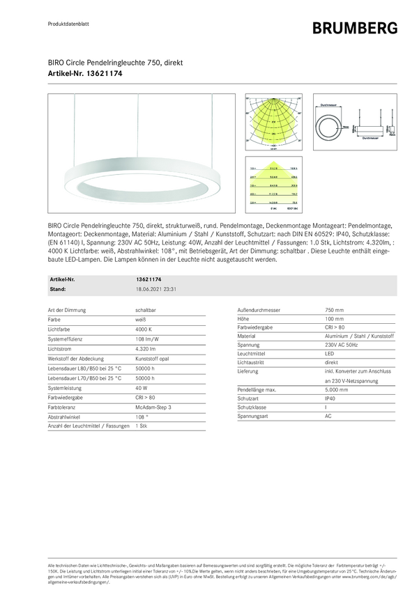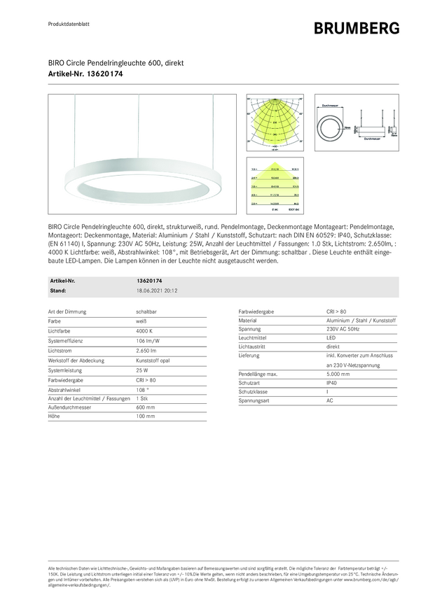 Lampa podwieszana LED Brumberg 13621173 13621173 brak biały