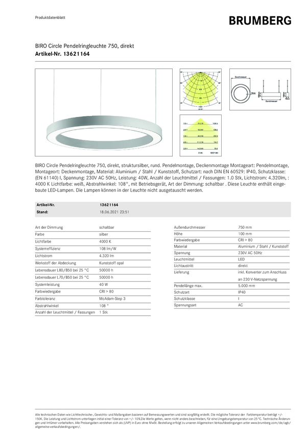 Lampa podwieszana LED Brumberg 13621164 13621164 brak srebrny