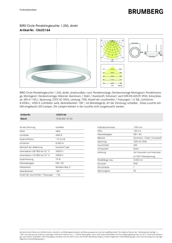Lampa podwieszana LED Brumberg 13623164 13623164 brak srebrny