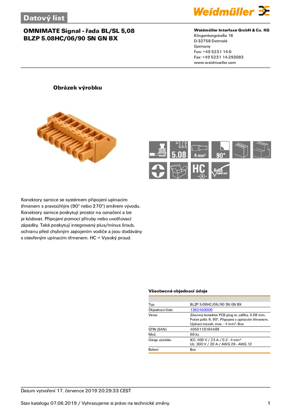 Weidmüller Obudowa złącza pin żeńskiego na kabel 1362450000 60 szt.