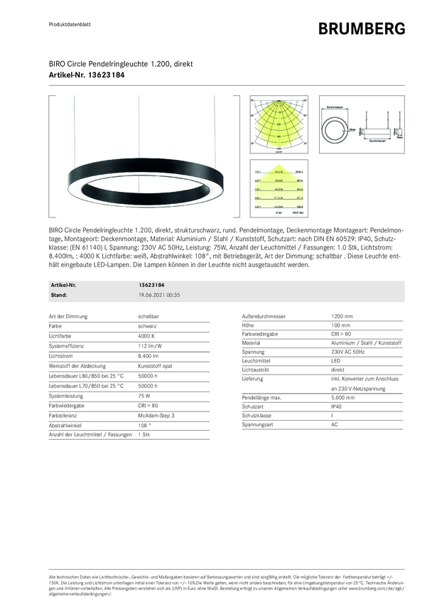 Lampa podwieszana LED Brumberg 13621184 13621184 brak czarny