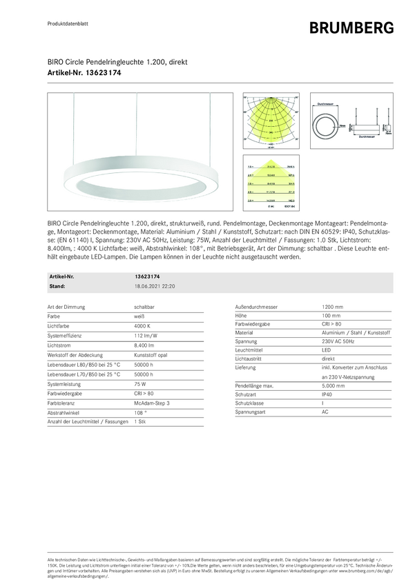 Lampa podwieszana LED Brumberg 13622174 13622174 brak biały