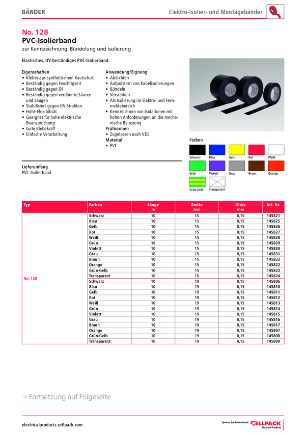 Taśma izolacyjna CellPack No. 128 145822 Cellpack (D x S) 10 m x 15 mm 10 m 1 szt.