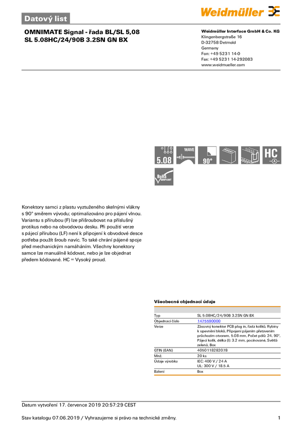 Weidmüller 1475590000 Złącze męskie PCB Łączna ilość styków 24 20 szt.