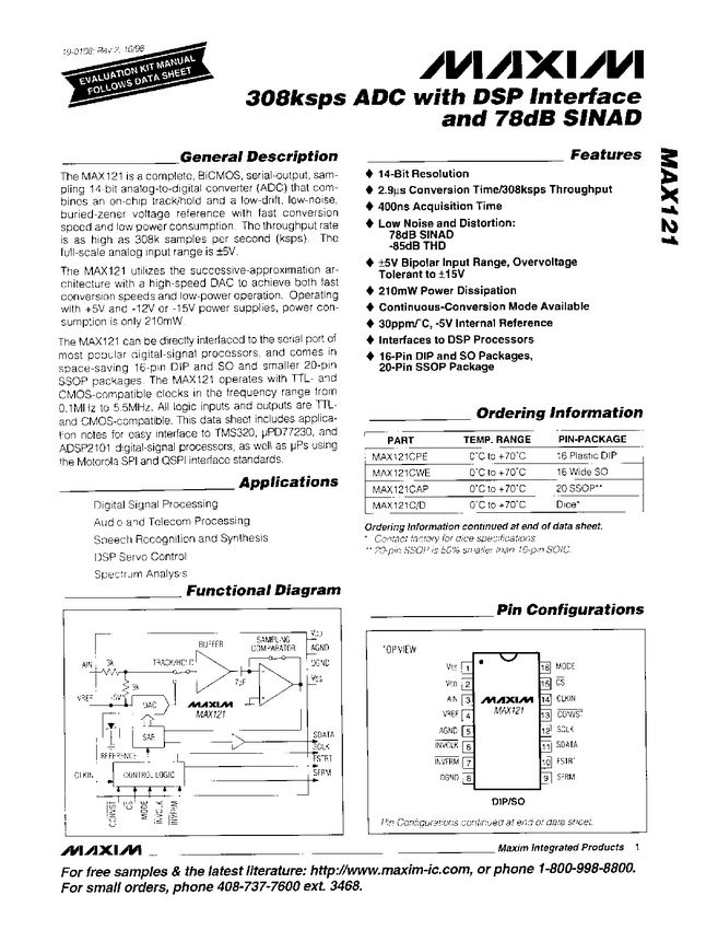 14BIT ADC WITH DSP INTERFACE 308KSPS DIP16 -40+85