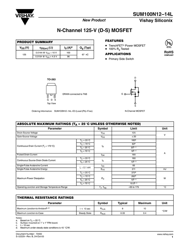 N-Channel 125-V (D-S) MOSFET