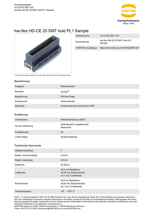 Harting 15030202601000 Złącze męskie Łączna ilość styków: 20 1 szt.