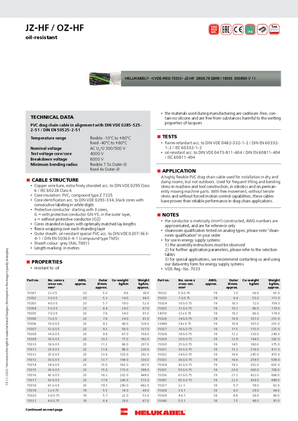 Helukabel 15022 Przewód do prowadnicy kabli JZ-HF 5 G 0.75 mm² szary 100 m