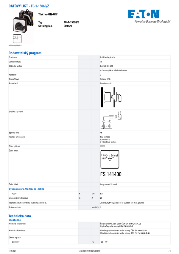 Eaton 009121 T0-1-15060/Z Przycisk ON/OFF 1 szt.