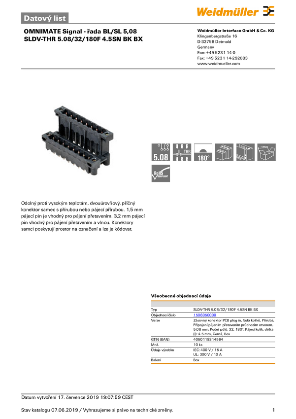 Weidmüller Obudowa złącza pin męskiego na PCB 1506050000 10 szt.