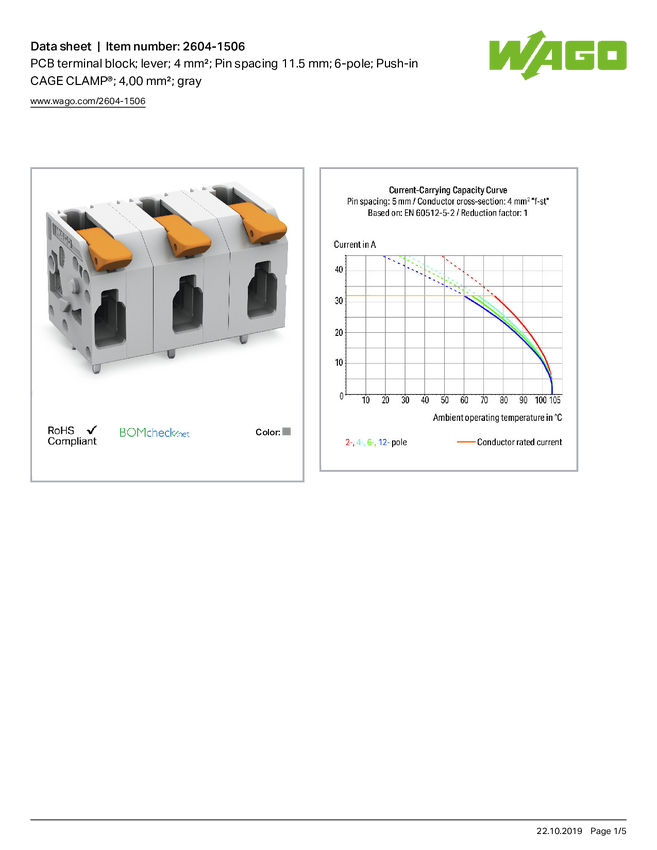 WAGO 2604-1506 Terminal PCB 4 mm² Ilość styków 6 1 szt.
