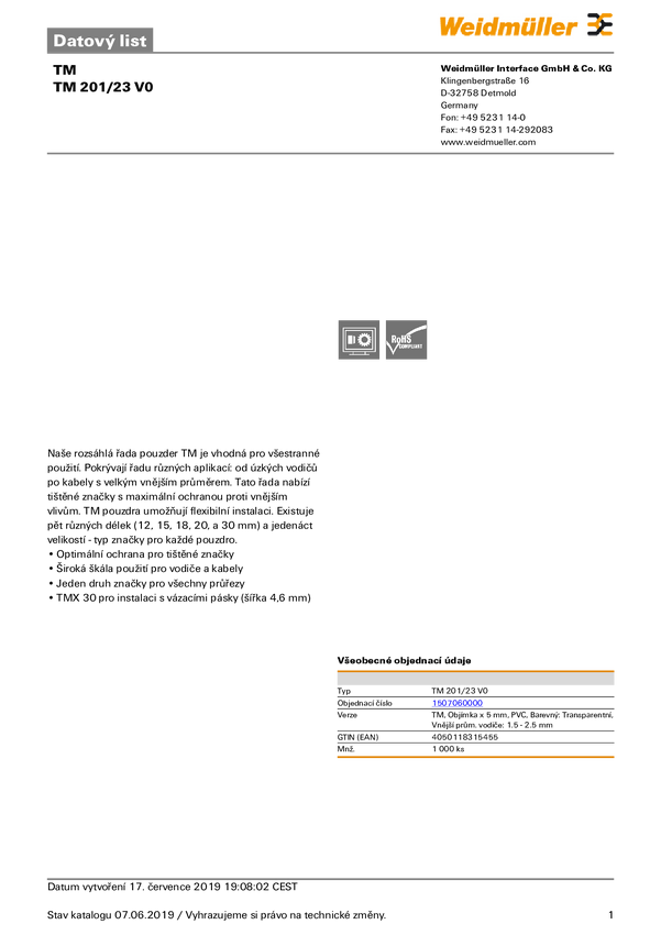 Weidmüller 1507060000 TM 201/23 V0 Tabliczka znamionowa przeźroczysty Ilość znaczników: 1000 1000 szt.