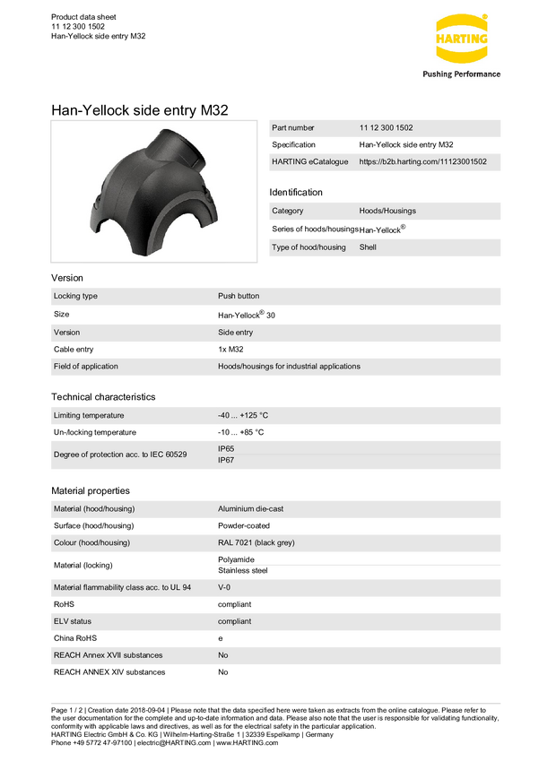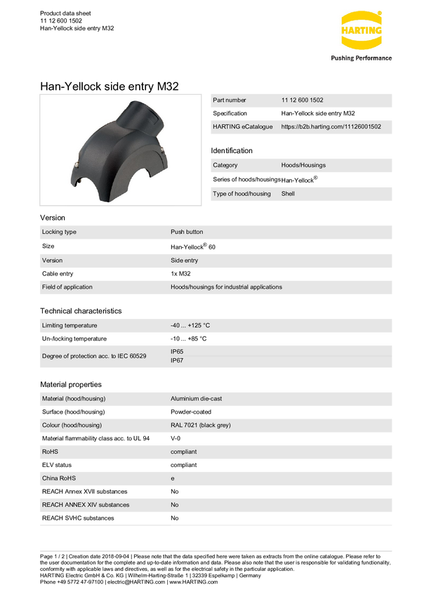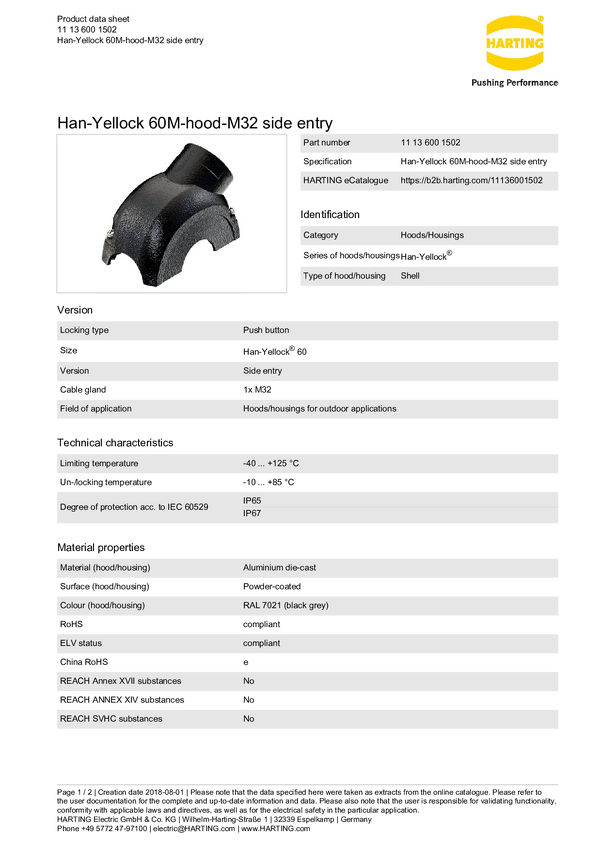 Pokrywa Harting 11 13 600 1502, 1 szt.