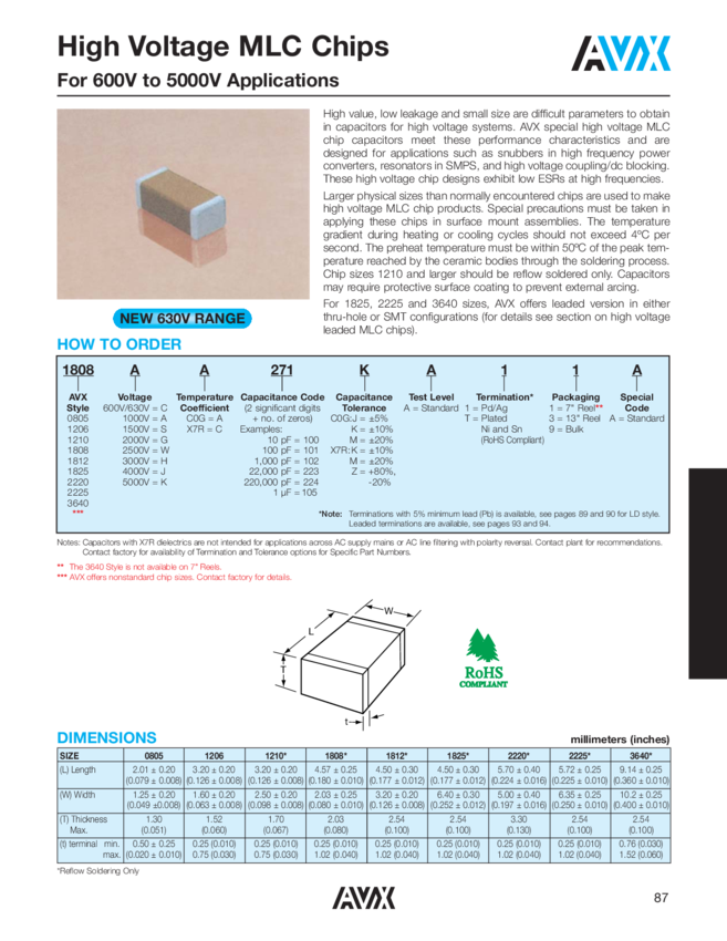 Cap Ceramic 150pF 3000V X7R 10% SMD 1808 125°C T/R