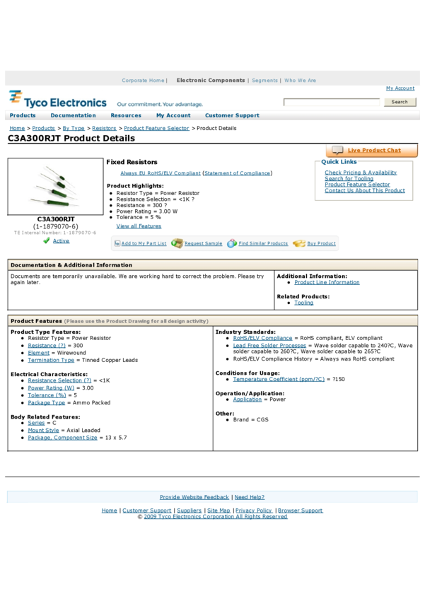 Res Wirewound 300 Ohm 5% 3W ±150ppm/°C Conformal AXL Thru-Hole Ammo Pack