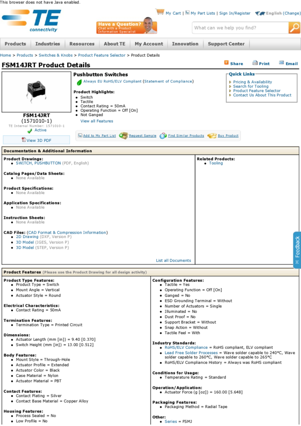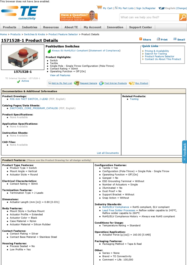 Switch Tactile OFF (ON) SPST Round Button J-Lead 50A 32VDC 100000Cycle 1.6N SMD T/R