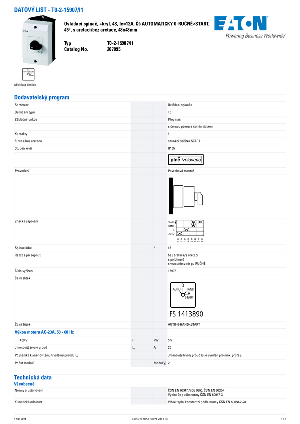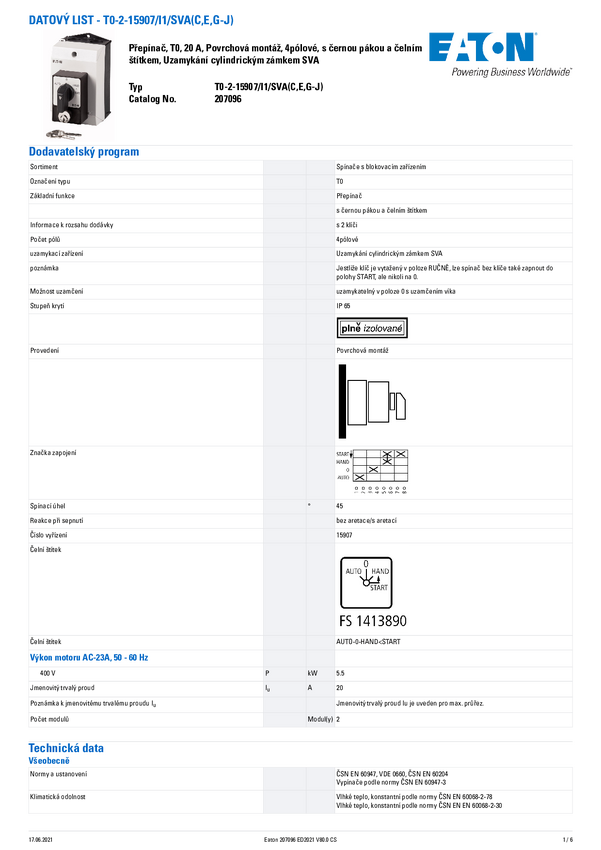 Eaton 207096 T0-2-15907/I1/SVA(C,E,G-J) Wyłącznik 1 szt.