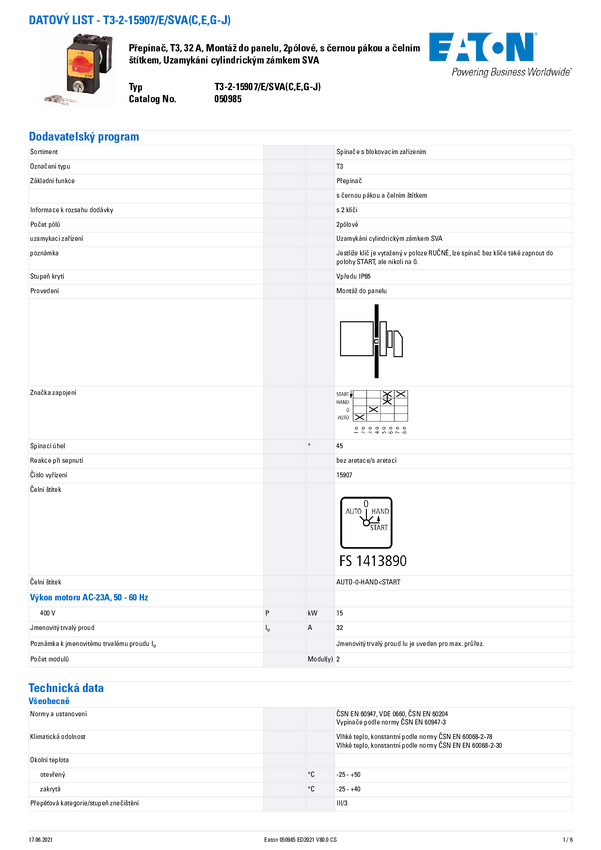 Eaton 050985 T3-2-15907/E/SVA(C,E,G-J) Wyłącznik 1 szt.