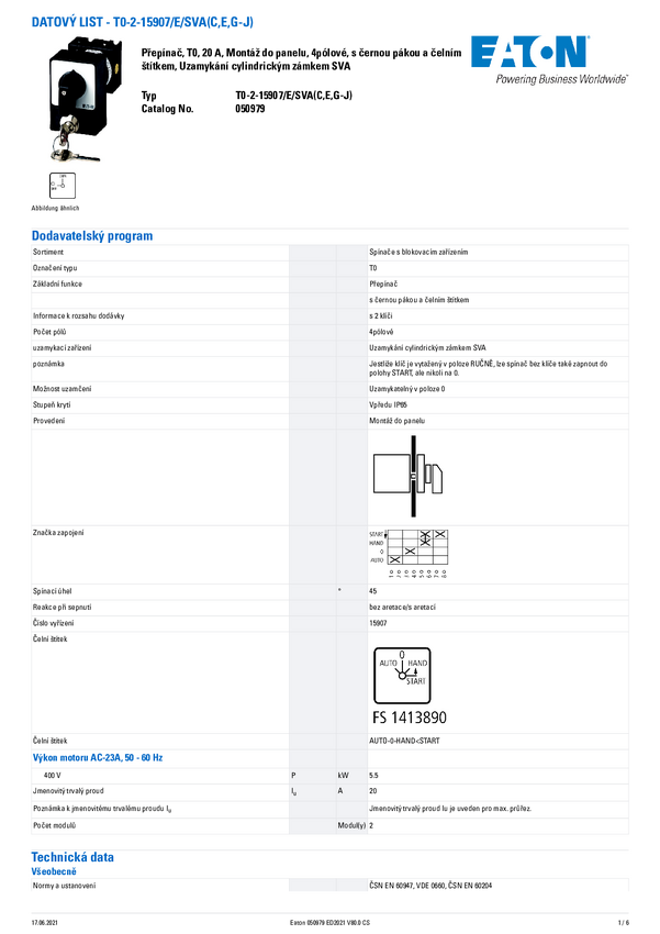 Eaton 050979 T0-2-15907/E/SVA(C,E,G-J) Wyłącznik 1 szt.