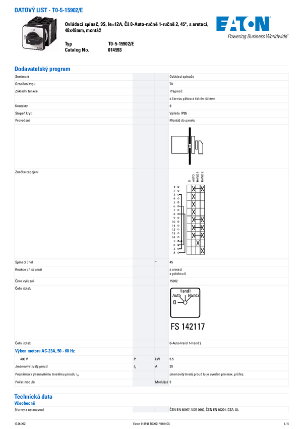 Eaton 014593 T0-5-15902/E Wyłącznik 1 szt.